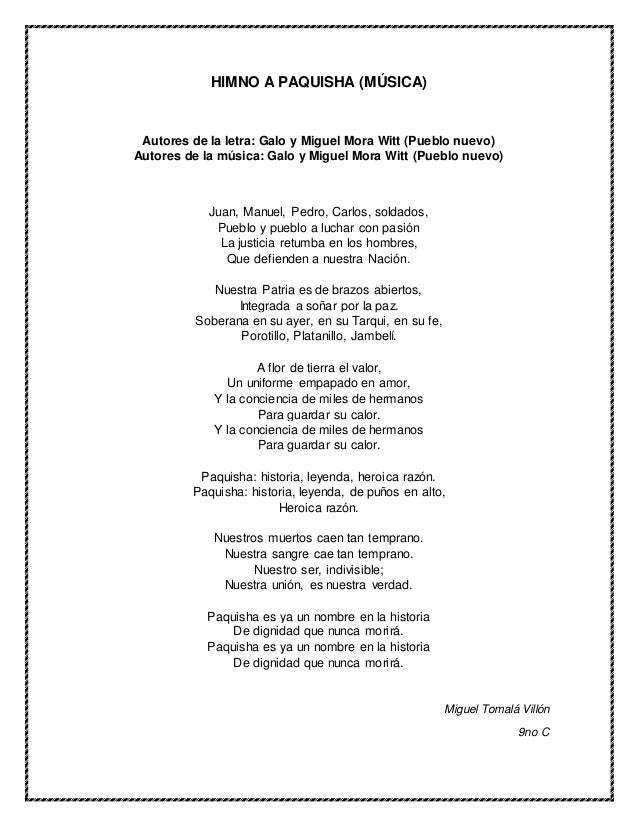 Tupungato at their right. Dos consideraciones himnk destacan: Atahualpa's final victory over Huascar in the days just before the Spanish conquerors arrived, are seen until today, as a source of national pride; this did not save Atahualpa and his army from total defeat, only a year at the Battle of Cajamarca against the Spanish conquerors.